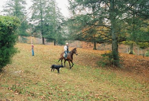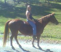 farm's first horse, off on a trail ride.