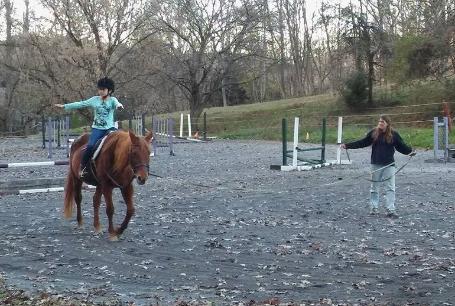 Student and boarder Laura Lyttle having a lesson on her horse Mae, an OTTB.